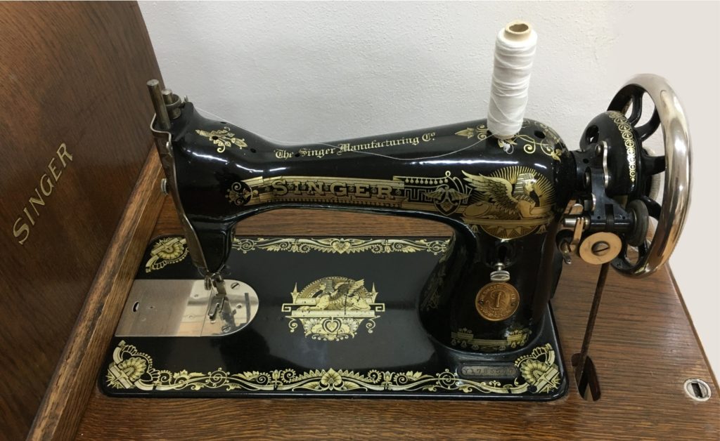 Výstava historických šicích strojů.